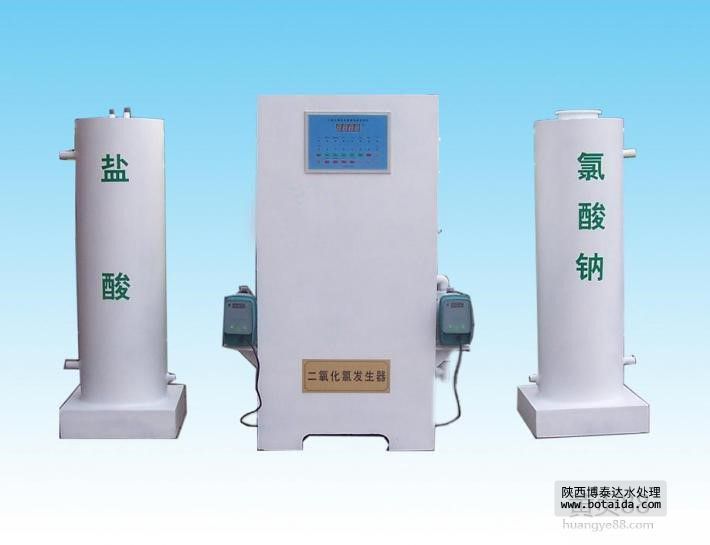 二氧化氯發生器以鹽酸和氯酸鈉為原料,采用負壓曝氣工藝,生產以二氧化氯為主,氯氣為輔的復合消毒液。領域涉及飲用水、二次供水、游泳池水、醫院污水、工業循環冷卻水、中水回用等。反應原理:NaClO3+2HCl=ClO2+1/2 Cl2 +NaCl + H2O